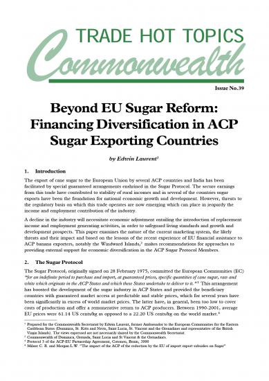Beyond EU Sugar Reform: Financing Diversification in ACP Sugar Exporting Countries